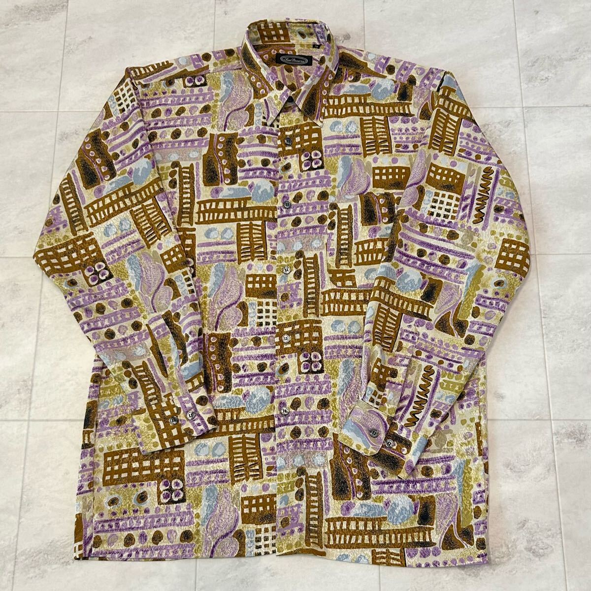- Sun Denisu 総柄 柄シャツ レトロ アート ビンテージ 長袖シャツ ポリエステル100%