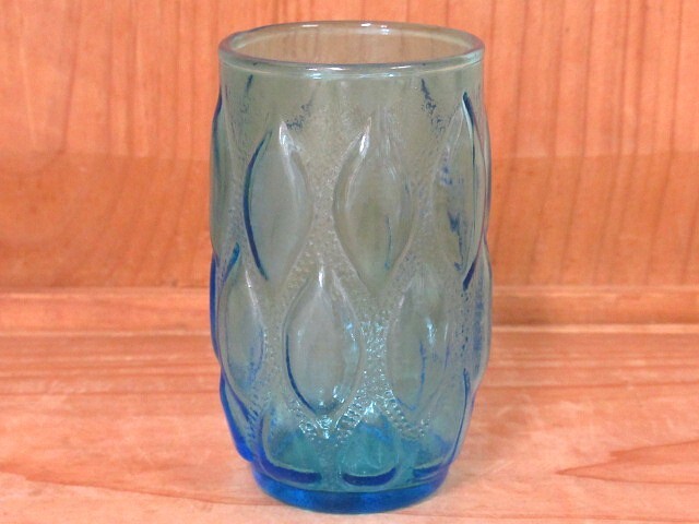 - ◆レトロなコップ:1:◆『よろけ:網目:楕円:雫』◆ウラン入り◆凹凸◆ガラス◆マリンブルー◆保存状態良好◆