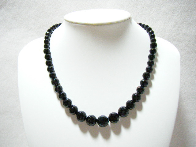 > ★留具 G SILVER ブラックスピネル? ネックレス 多面カット 6mm~11.5mm 45cm 黒 ブラック グラデーションタイプ 【LA32】