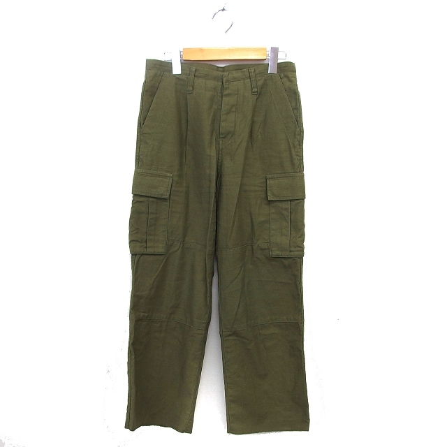> ユニオンランチ UNION LAUNCH カーゴパンツ タック ワイド コットン 綿 ボタンフライ XS カーキ /NT17 レディース