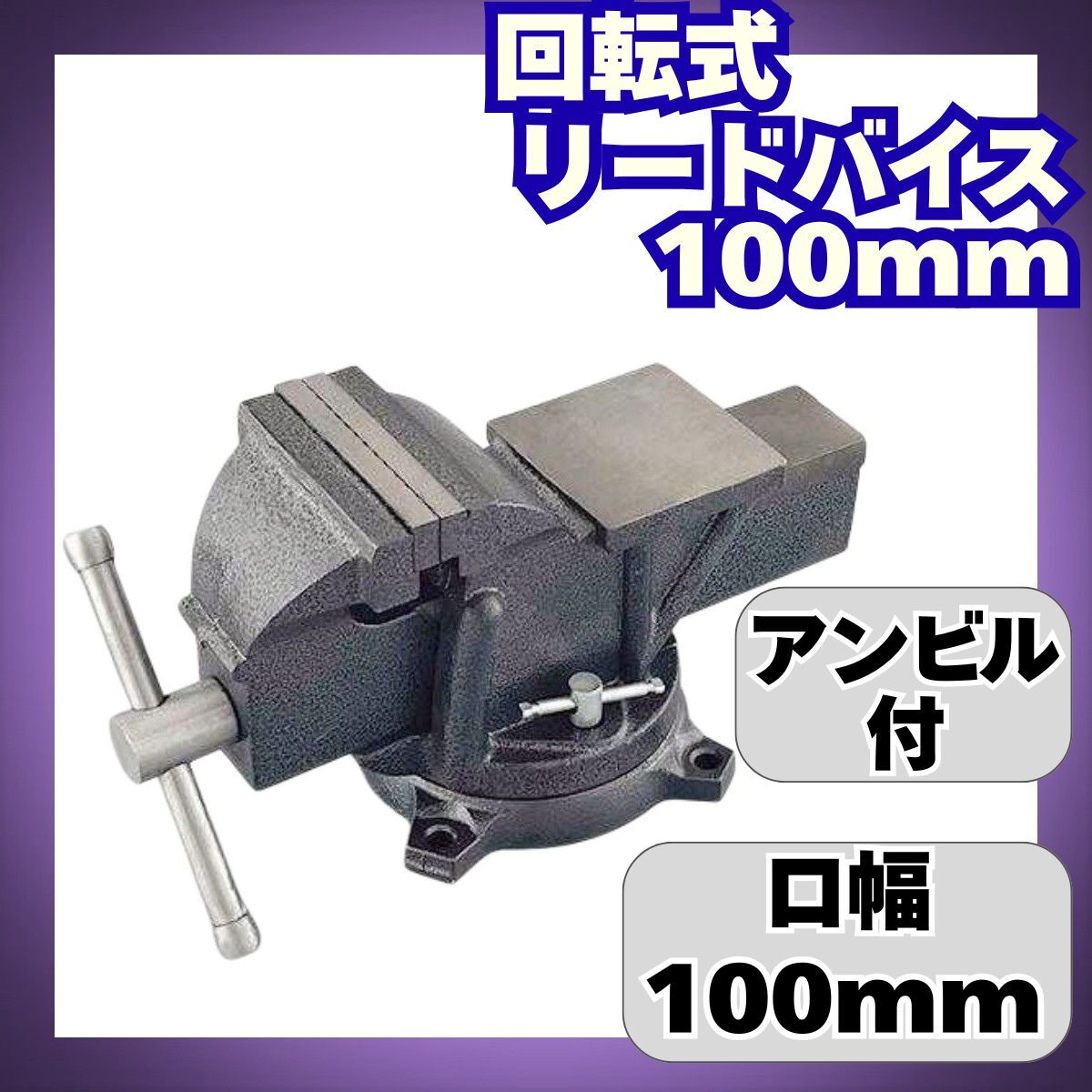 - 回転式 リードバイス 口幅100mm アンビル付 万力 アンビルバイス 1201