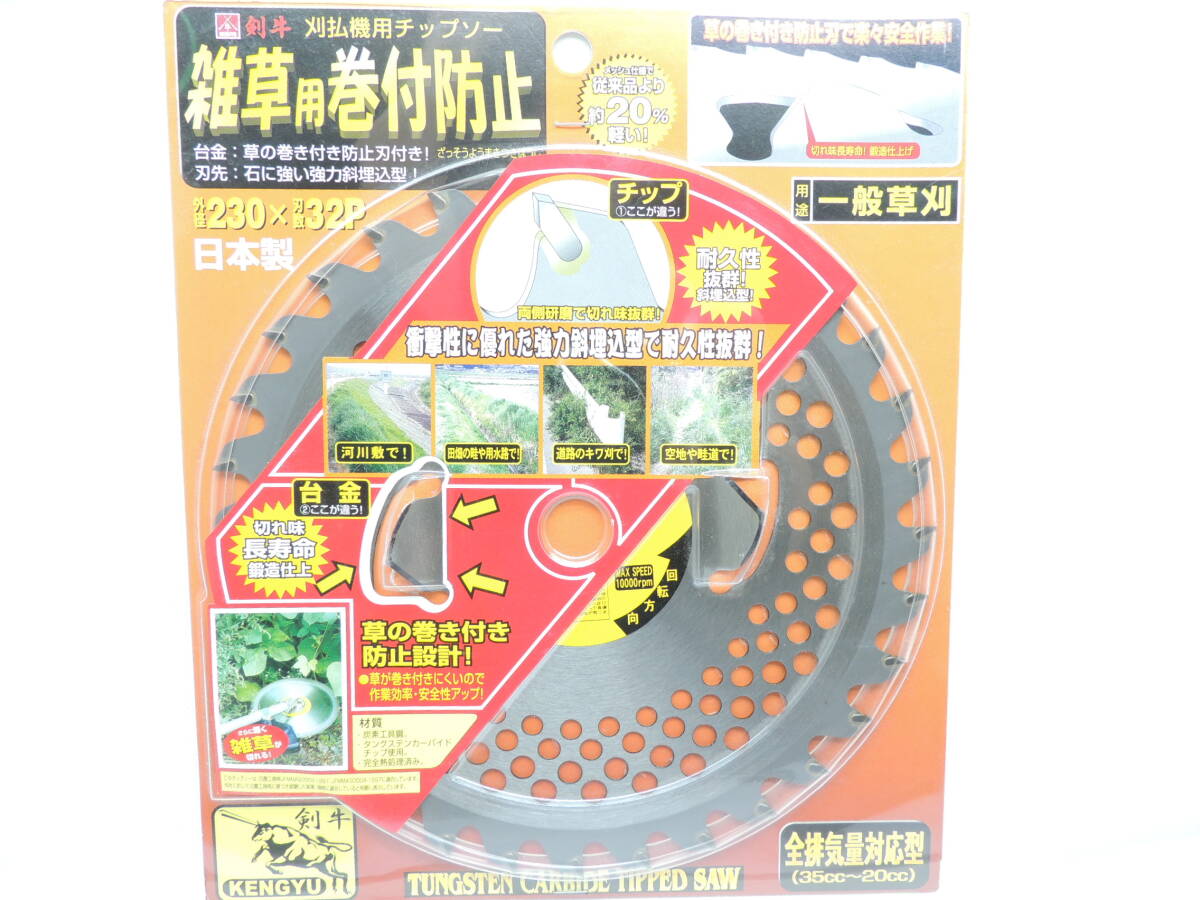 > 訳あり 剣牛 日本製 未使用 刈払機用チップソー 雑草用巻付防止 230*32P 1枚 JAN 4990311666131 小林鉄工所