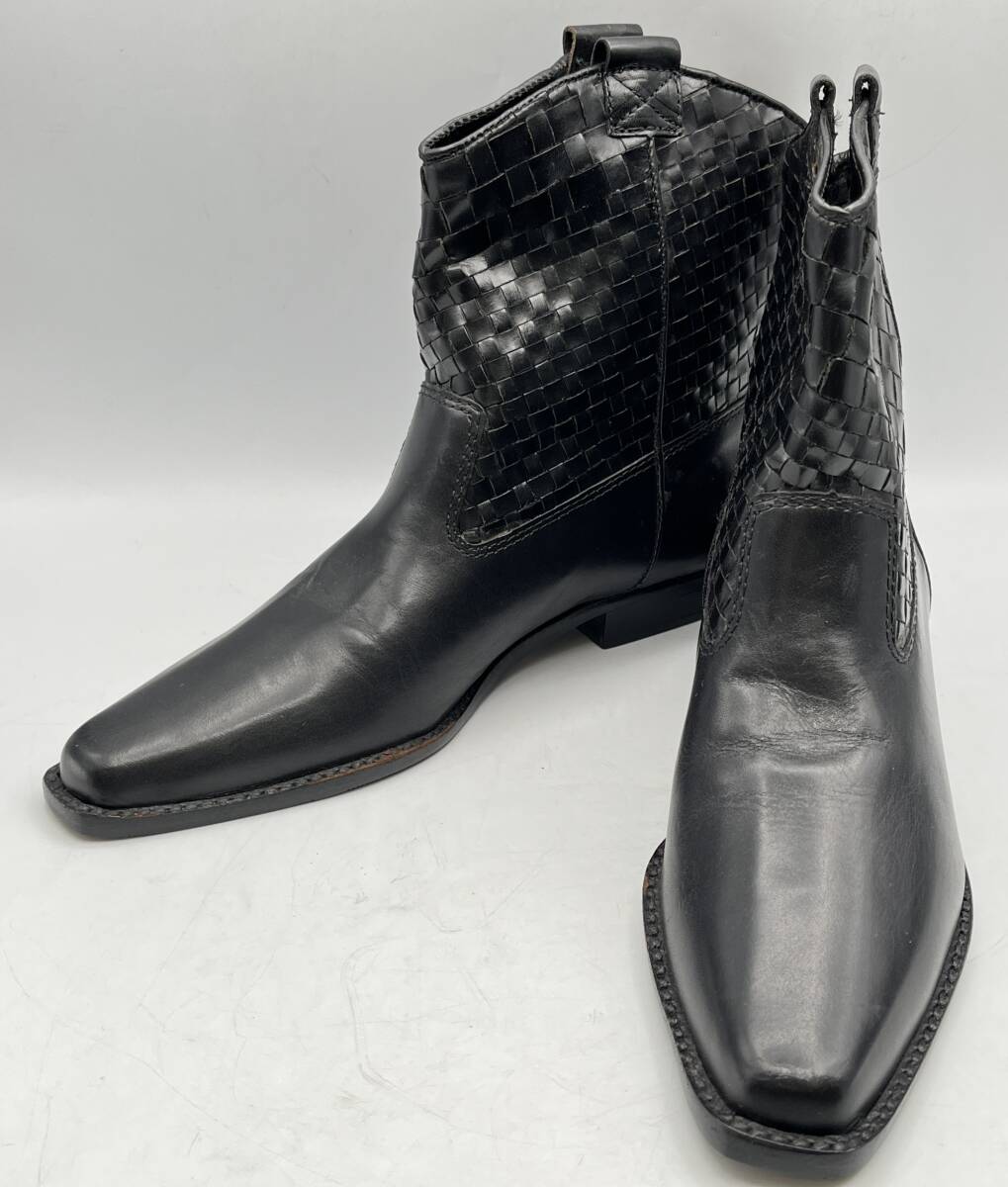 > i3455HI UNISA ウニサ ショート ブーツ フラット サイズ6 1/2 B レディース 靴 シューズ レザー 黒 こげ茶 ブラック ブラウン ほぼ未使用