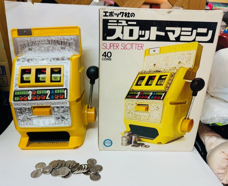 - エポック社 ニュー スロットマシン SUPER SLOTTER コイン25枚 カラー イエロー 元箱付き USEDです