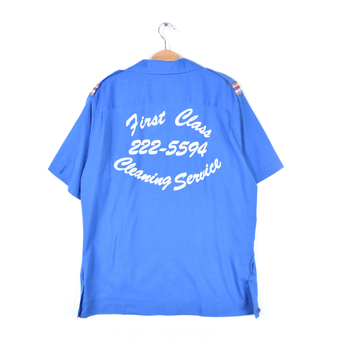 - 【送料無料】70s キングルイ USA製 ヴィンテージボーリングシャツ ブルー KING LOUIE サイズL 古着 @CE0009