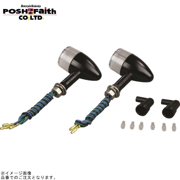 - POSH ポッシュ 091499-L6 アルミマシンドウインカー 砲弾タイプ ロングステーダブル球(電球無) ブラックボディ/クリアーレンズ