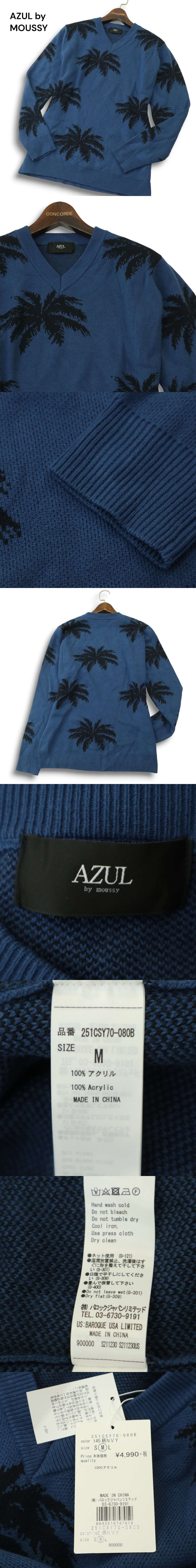 - 【新品 未使用】 AZUL by MOUSSY アズール マウジー 秋冬 ヤシの木柄★ Vネック ニット セーター Sz.M メンズ 青系