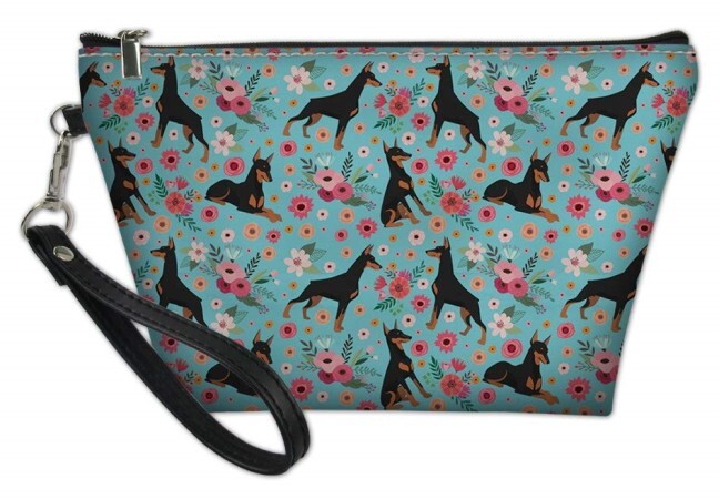 - ドーベルマン・ピンシャー☆フラワーポーチ☆レザーストラップ付き&マチ付き☆アメリカ直輸入☆21.5cmx14.5cmx6.5cm