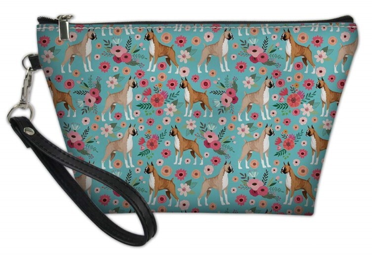 - ボクサー☆フラワーポーチ☆レザーストラップ付き&マチ付き☆アメリカ直輸入☆21.5cmx14.5cmx6.5cm