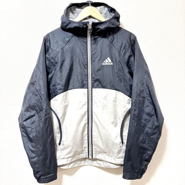 > バイカラー◎【adidas】アディダス ウィンドブレーカー 紺 グレー メッシュ 薄手 ロゴ ランニング アウトドア メンズ サイズM/Y32600SS