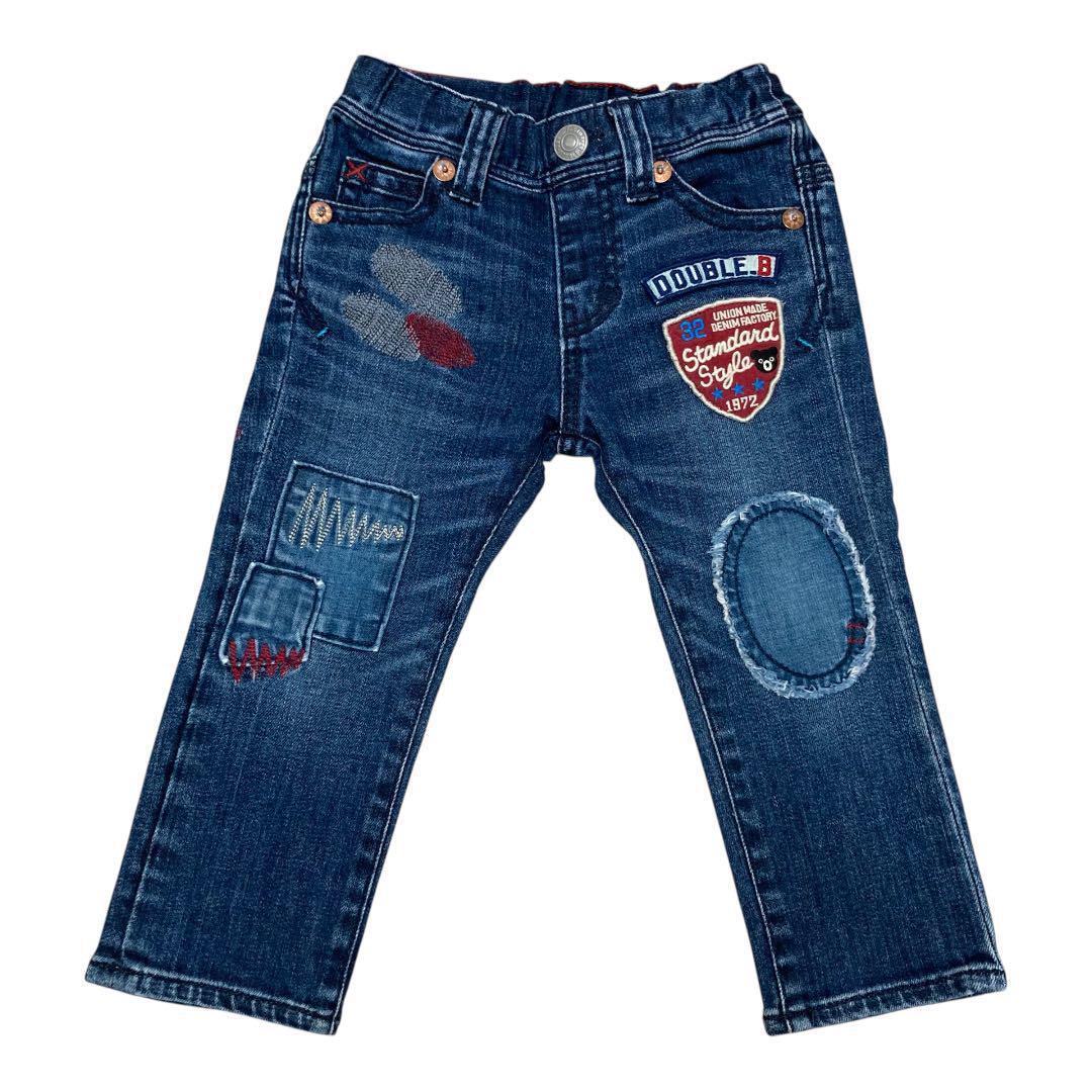> ミキハウス ダブルビー 90 定価2万 長ズボン クマ柄 デニムパンツ ジーパン ジーンズ パッチワーク MIKI HOUSE