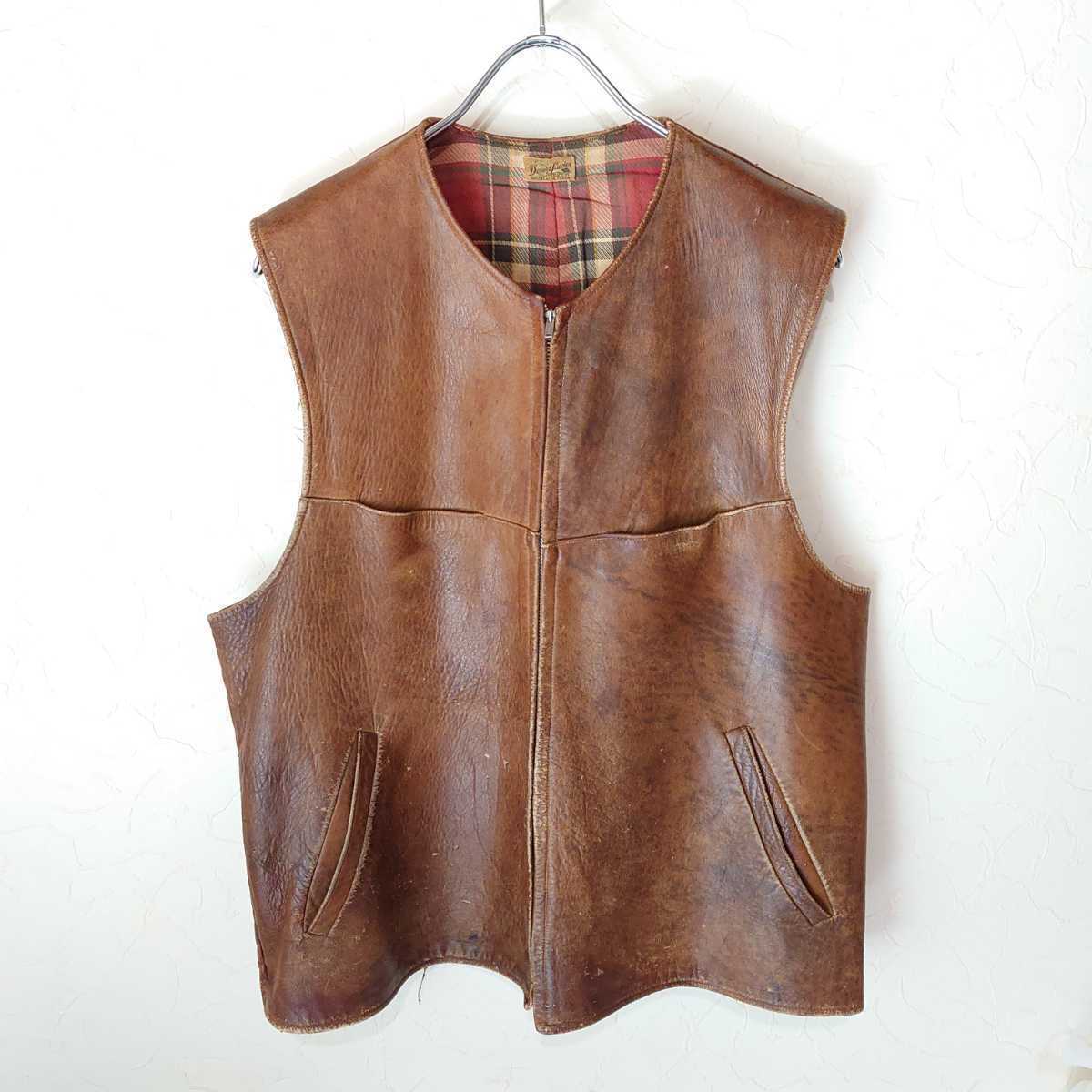 - 50s ジップアップレザーベスト フルジップレザーベスト ワークベスト ビンテージワークベスト ビンテージレザーベスト ビンテージ