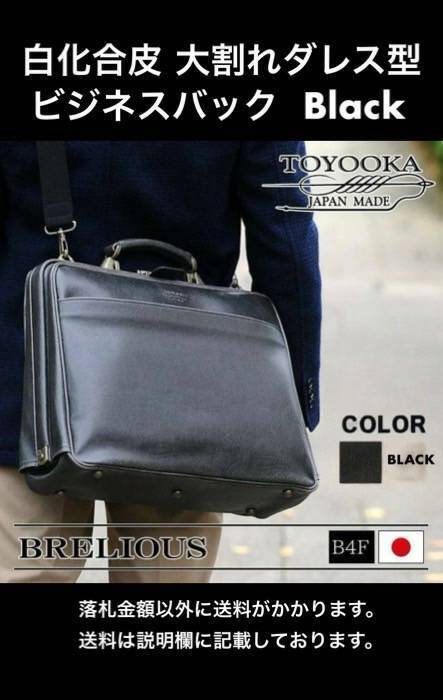 - 未開封 BRELIOUS ブレリアス アンティーク調 白化合皮大割れダレス型ビジネスバッグ ブラック B4ファイル対応 豊岡市生産国産バッグ