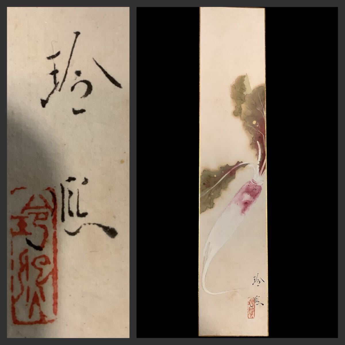- 【模写】短冊Jul712[山口玲煕 赤大根図]彩色紙本 書いたもの/日本画 花鳥画 山口華楊兄 菊池契月師事 京都 大正昭和期