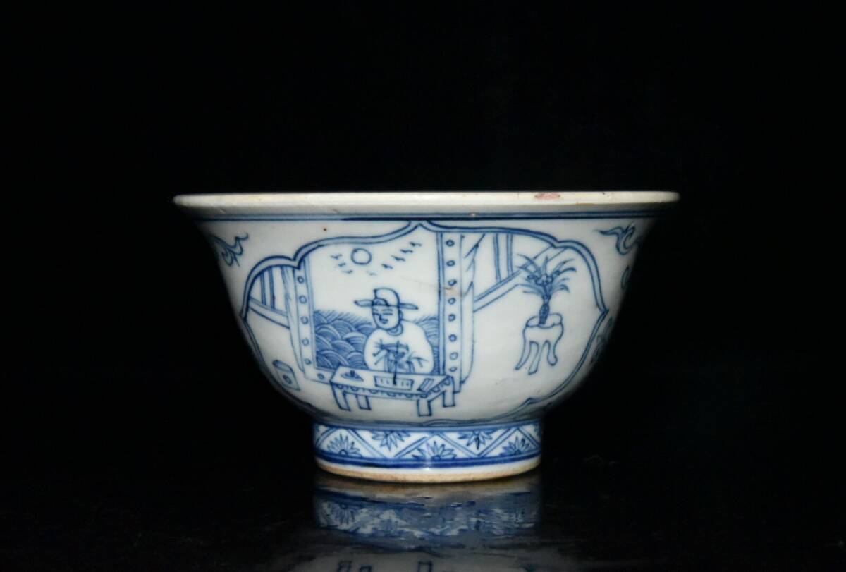 - 【超珍館蔵】清 康熙年製款 古陶瓷品 青花 人物故事紋 供碗 陶藝 古賞物 古董品 古美術品 時代物 旧家蔵出 稀少珍蔵品