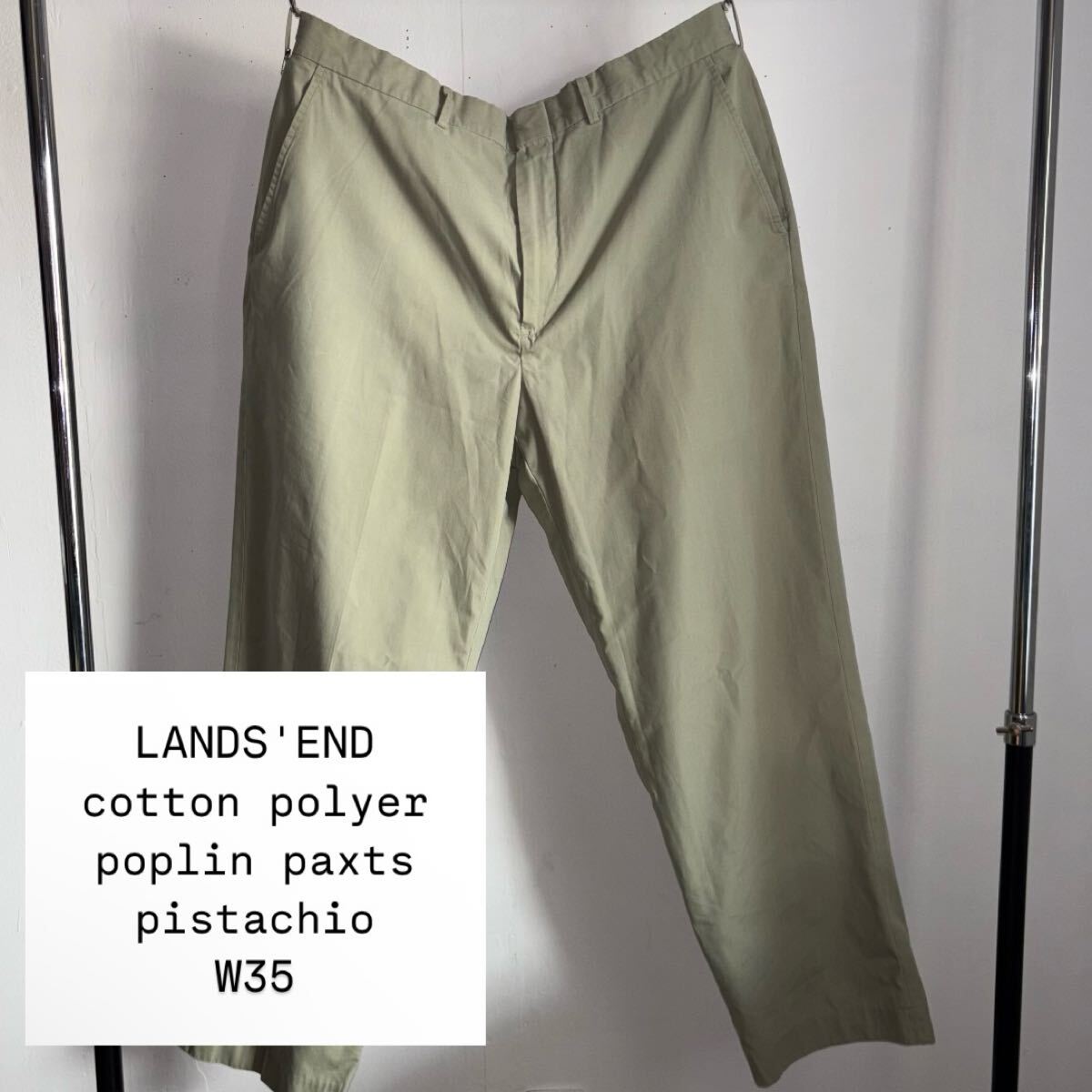 > LANDS'END cotton / poly poplin pants W35 pistachio ランズエンド レアカラー コットン ポリ ポリエステル ポプリンパンツ ピスタチオ