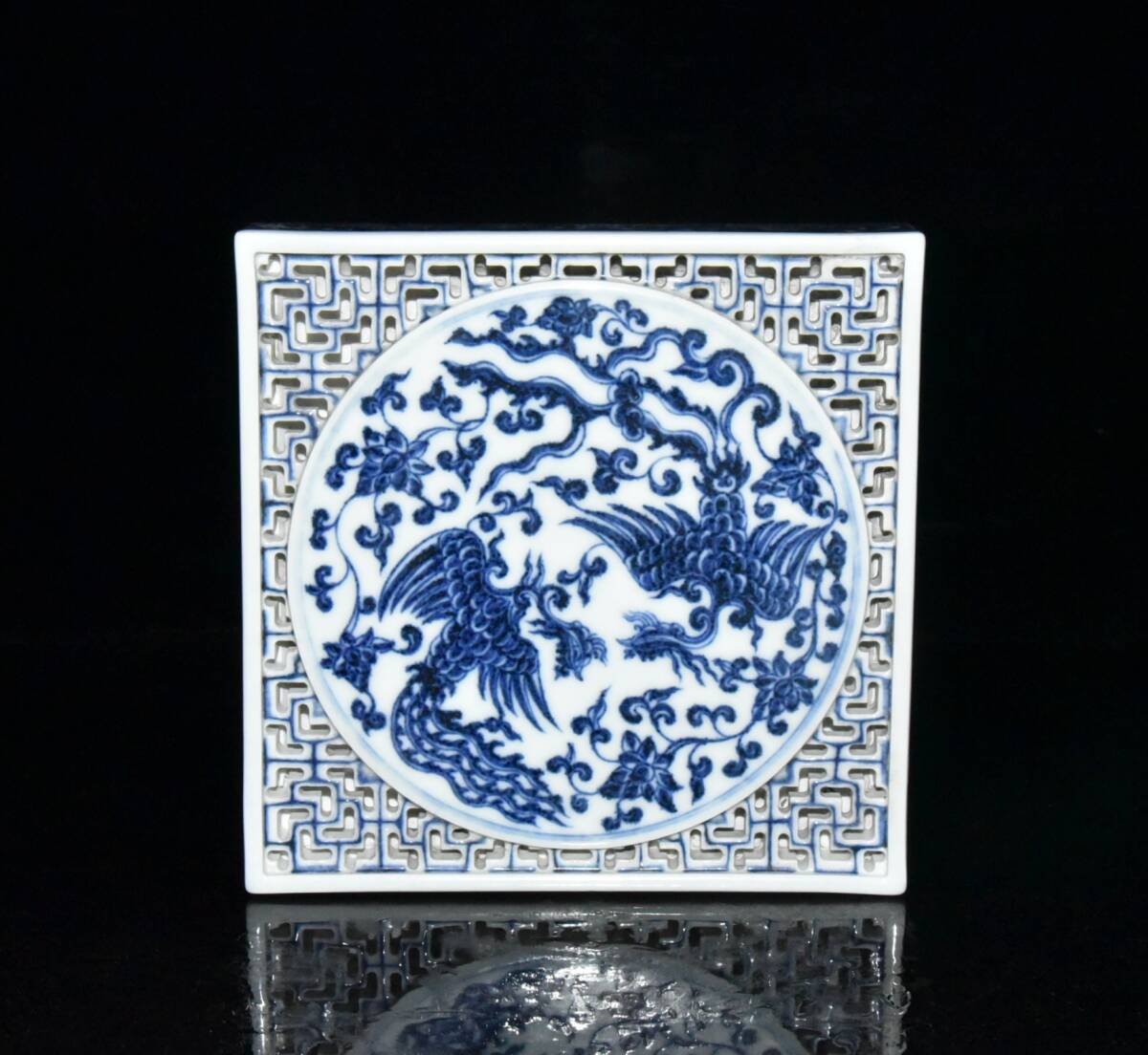 - 『館蔵珍品 明 宣德年製款 古陶瓷品 青花 雙鳳紋 茶盤 陶藝』稀少珍蔵品 古賞物 貴重物品 収蔵品 中国古美術 時代物 古董品