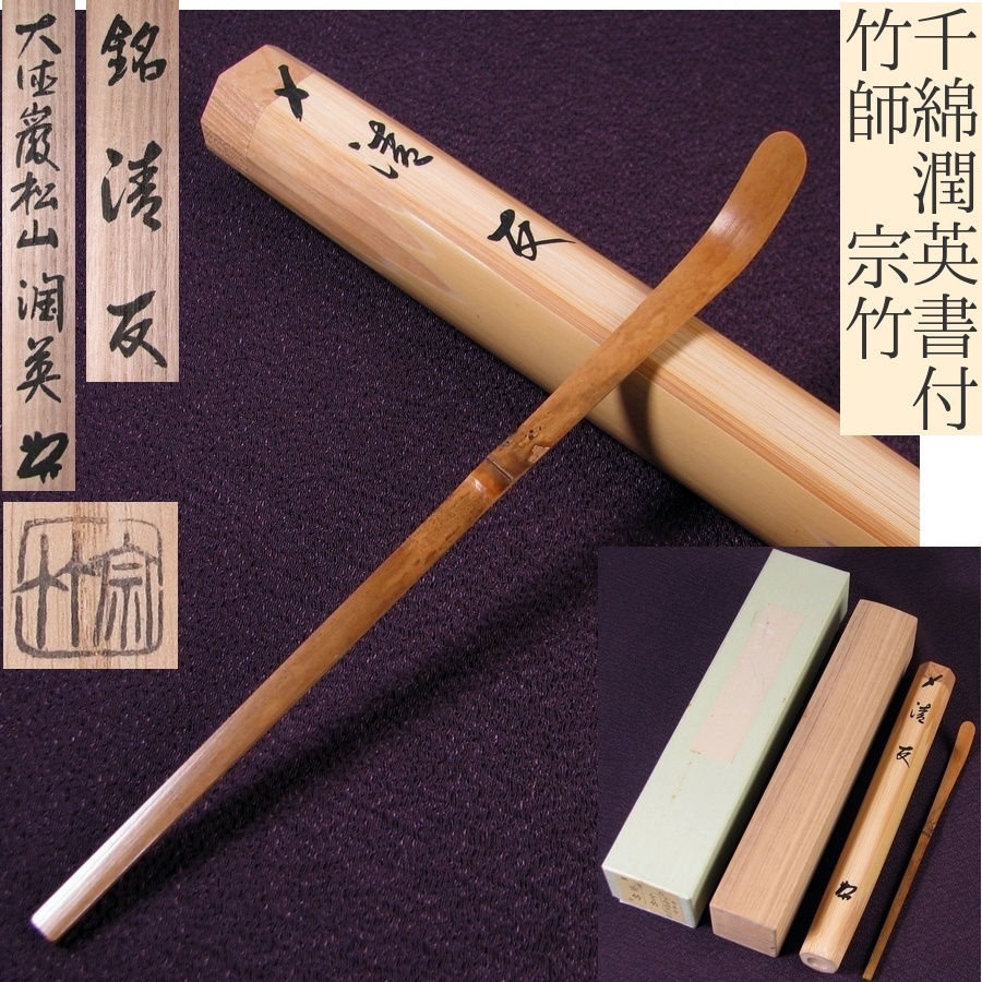 - 大徳寺派秀善寺 千綿潤英書付 茶杓 銘 :[清友] 竹師:宗竹 共箱 茶道具/25f052