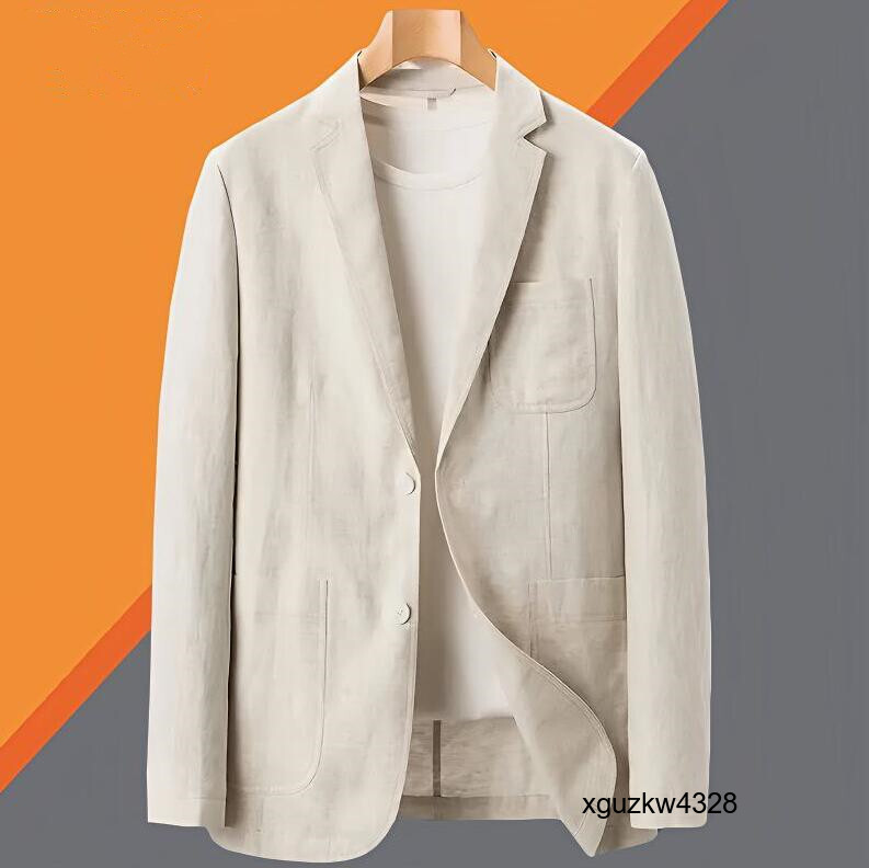 > テーラードジャケット メンズ ビジネス 麻スーツ 綿麻 ブレザー 薄手 春夏秋 リネンジャケット 通気性 清涼感 ベージュ 白2色