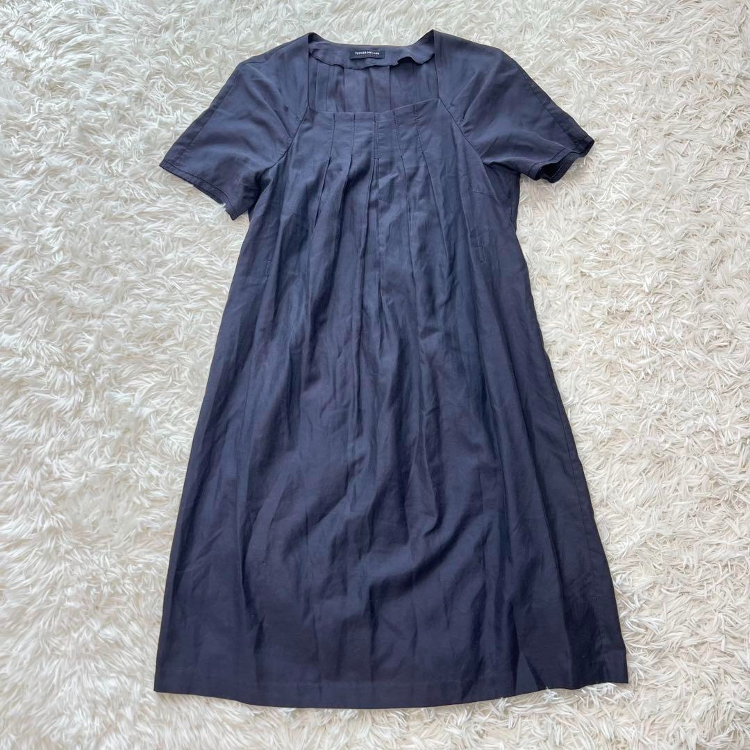- TOMORROWLAND collection トゥモローランド シルク混リネン ワンピース チュニック丈 シャツワンピース ネイビー 紺 タックデザイン