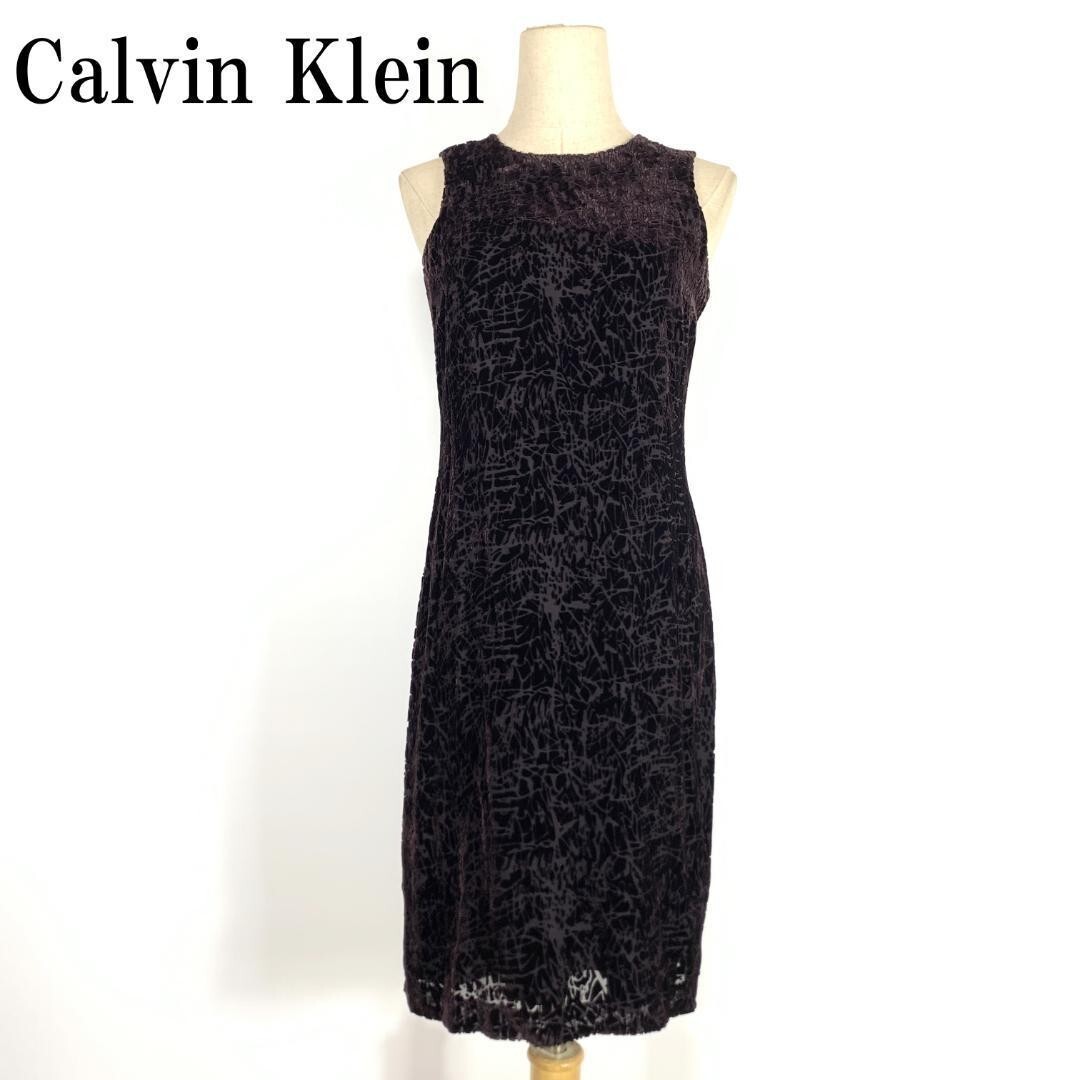 - LA2866 カルバンクライン ノースリーブベロア調ロングワンピースCalvin Klein タイト感 バックスリット ポケット無しブラウン4