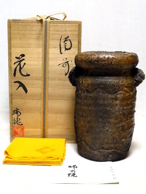 - 備前花入 小野田瑞穂 共箱 共布 栞 双耳花入 花器 花生 備前焼