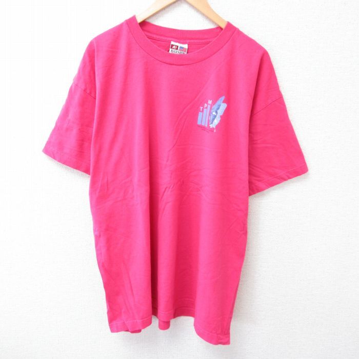 - XL/古着 半袖 ビンテージ Tシャツ メンズ 00s チョウ 大きいサイズ コットン クルーネック 濃ピンク 25jun30 中古