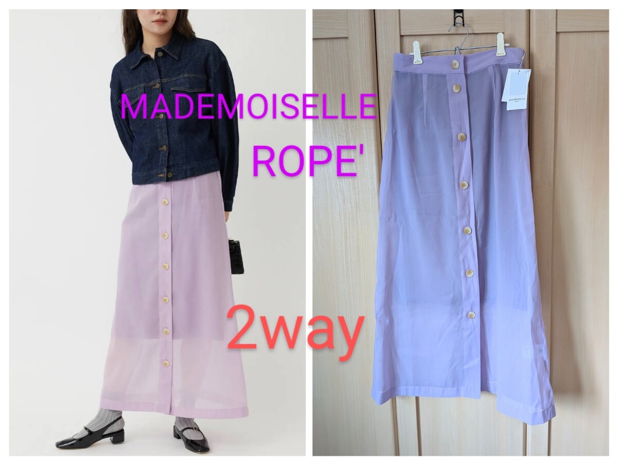 - タグ付 MADEMOISELLE ROPE' レディース38 マドモアゼル ロペ 2way レイヤード ロング シアースカート M相当 ラベンダー 未使用 新品