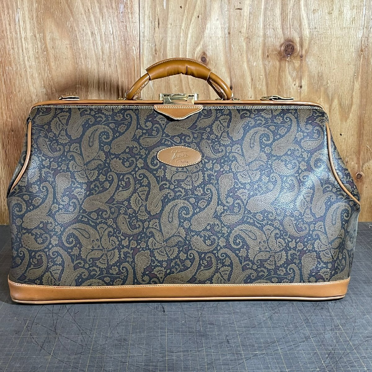 - 【17956Q044】バッグ TEXIER ボストンバッグ フランス製 鍵付き ペイズリー柄 ブラウン テキシエ ショルダーバッグ ドクターバッグ 現状品