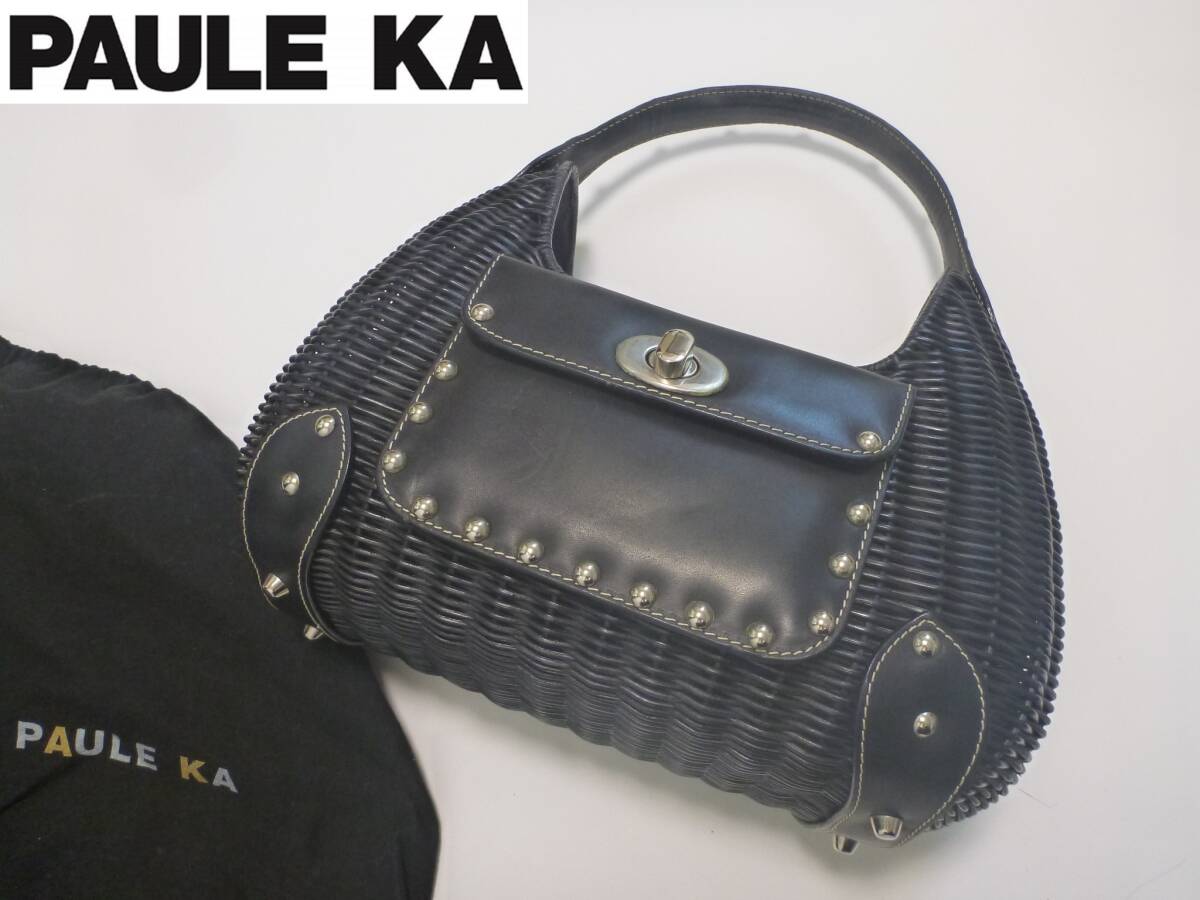- 4万 超美品 PAULE KA ポールカ★黒 ブラック 籠バッグ 保存袋あり ハンドバッグ
