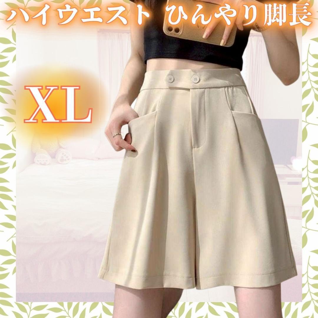 - ラスト1点! ショートパンツ XL 膝上 ハイウエスト Aライン ハーフパンツ ホワイト