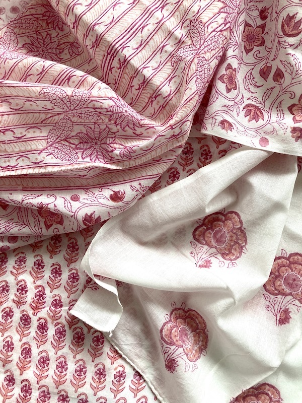 - 新品 Kilol◆手染めインドブロックプリント パッチワークフラワープリント大判インドコットンストール
