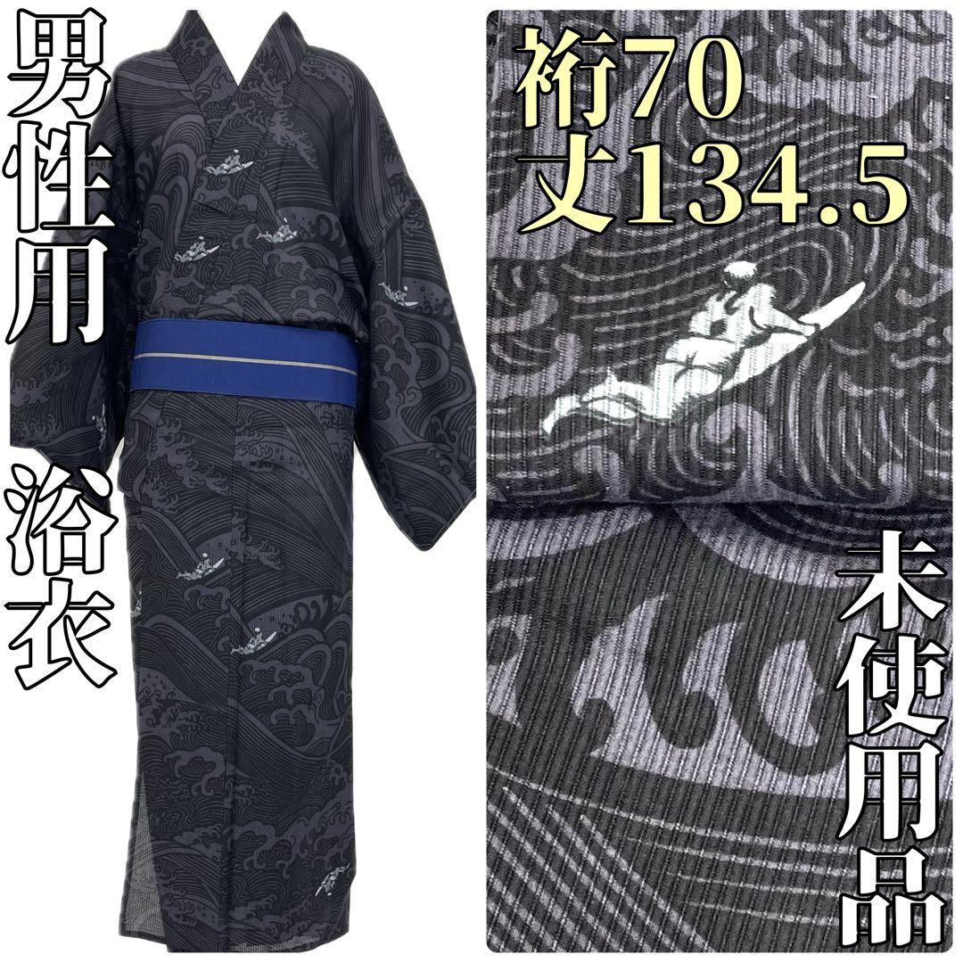 - 【着物と帯 時流】Y63y◆男性用浴衣◆メンズ浴衣 綿絽 サーフィン 珍しい柄