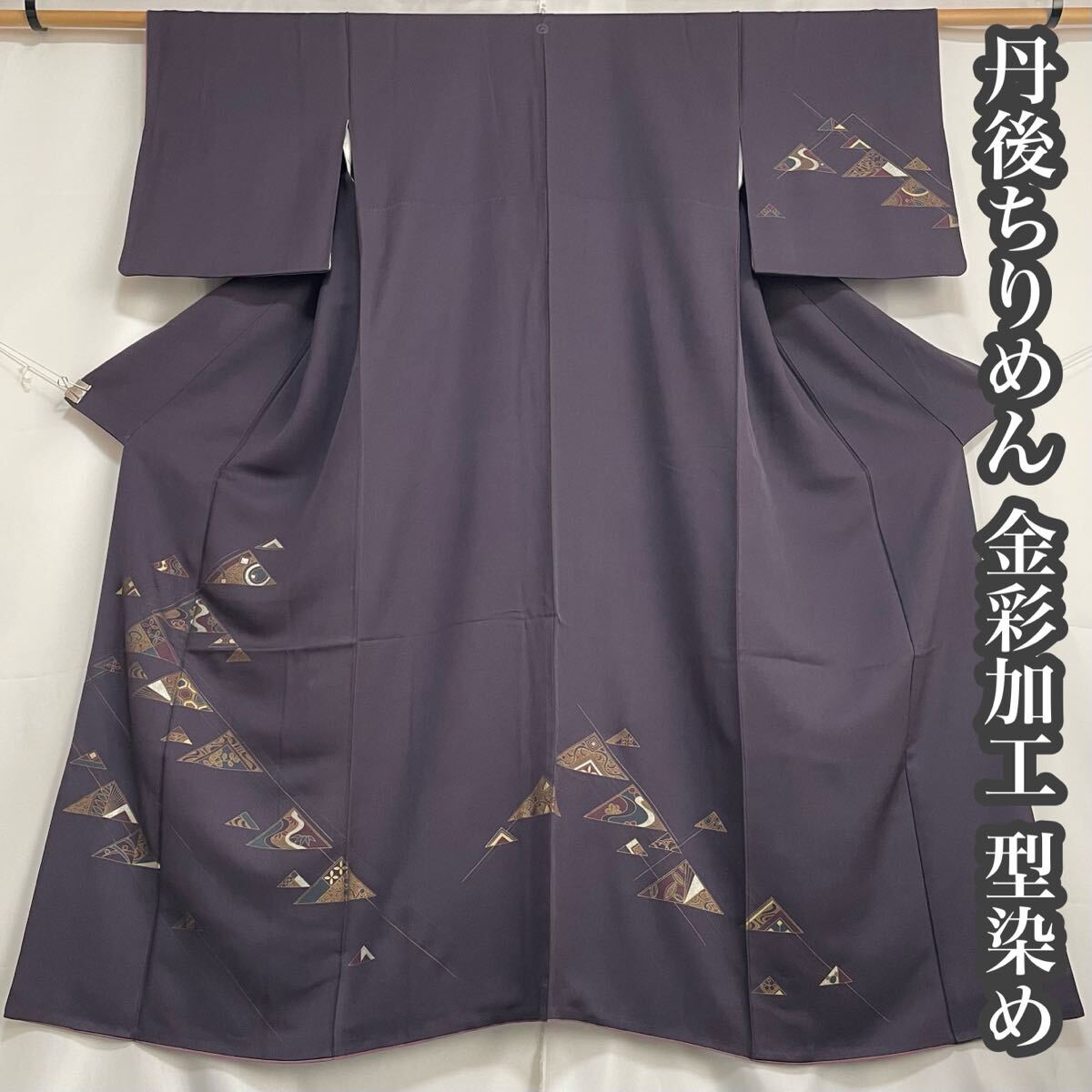> #H534 付け下げ訪問着 丹後ちりめん 金彩加工 型染め 菱文 正絹 スーパー鈴ガード加工 刺繍紋 和装 和服 フォーマル 着物【wellriver】
