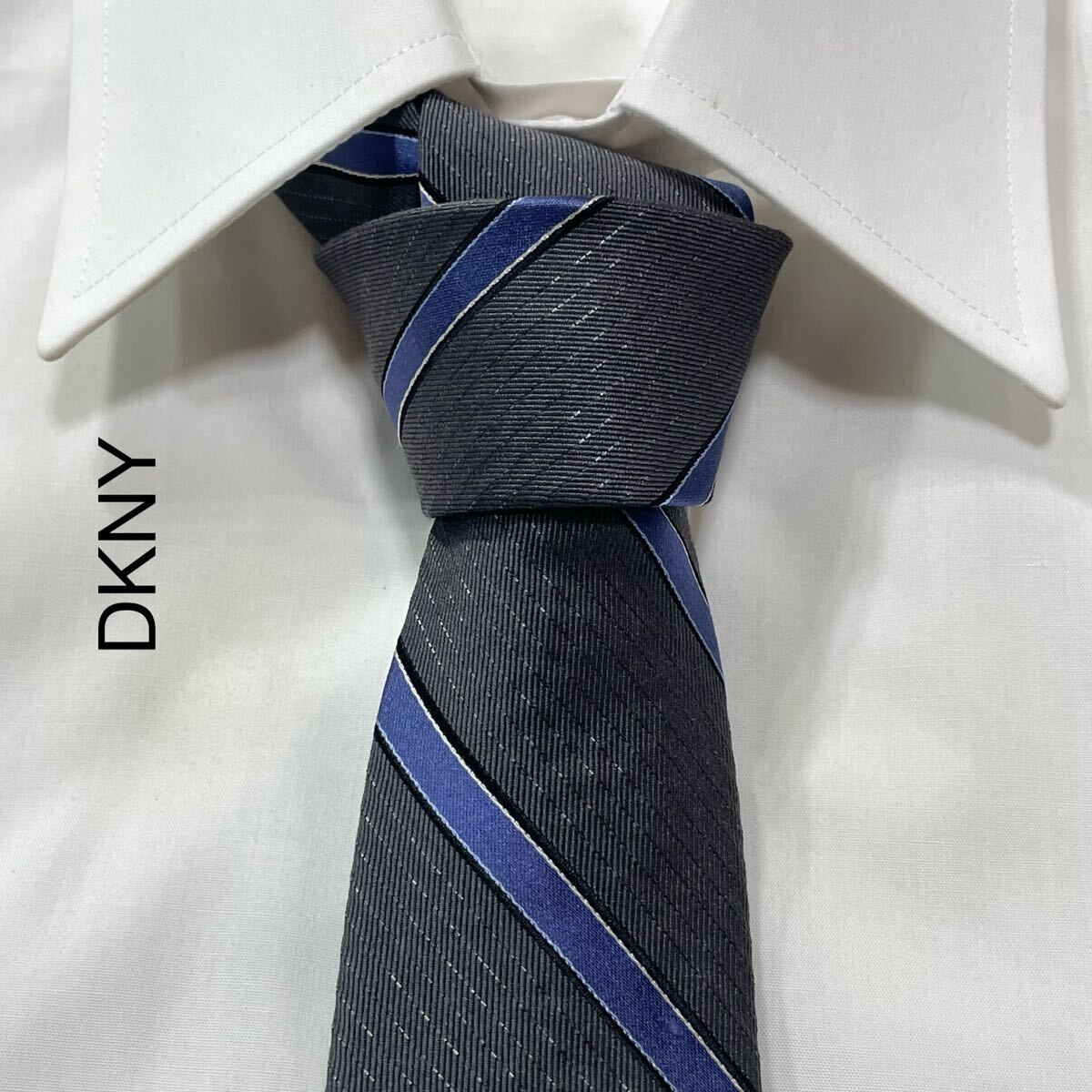 > DKNY ダナキャランニューヨーク レジメンタル ストライプ シルク ネクタイ グレー ブルーパープル ブラック TG2579