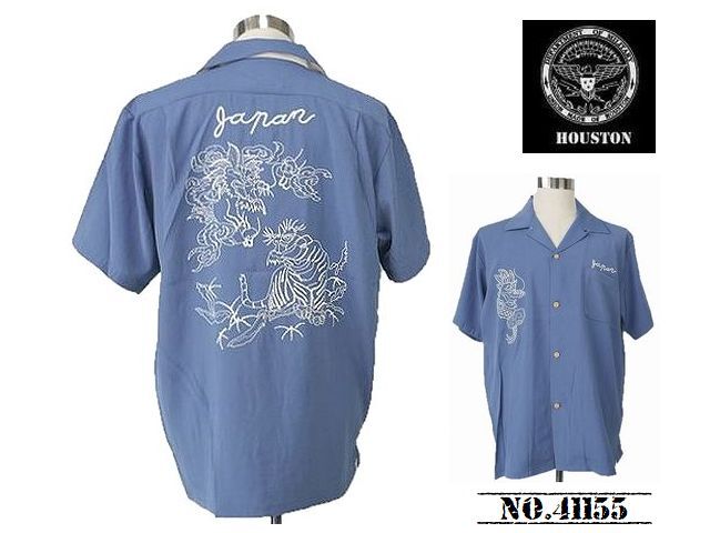 - 【送料無料 35%OFF】HOUSTON ヒューストン 刺繍スーベニアシャツ 「RYU & TORA」柄 NO.41155 BLUE_Lサイズ