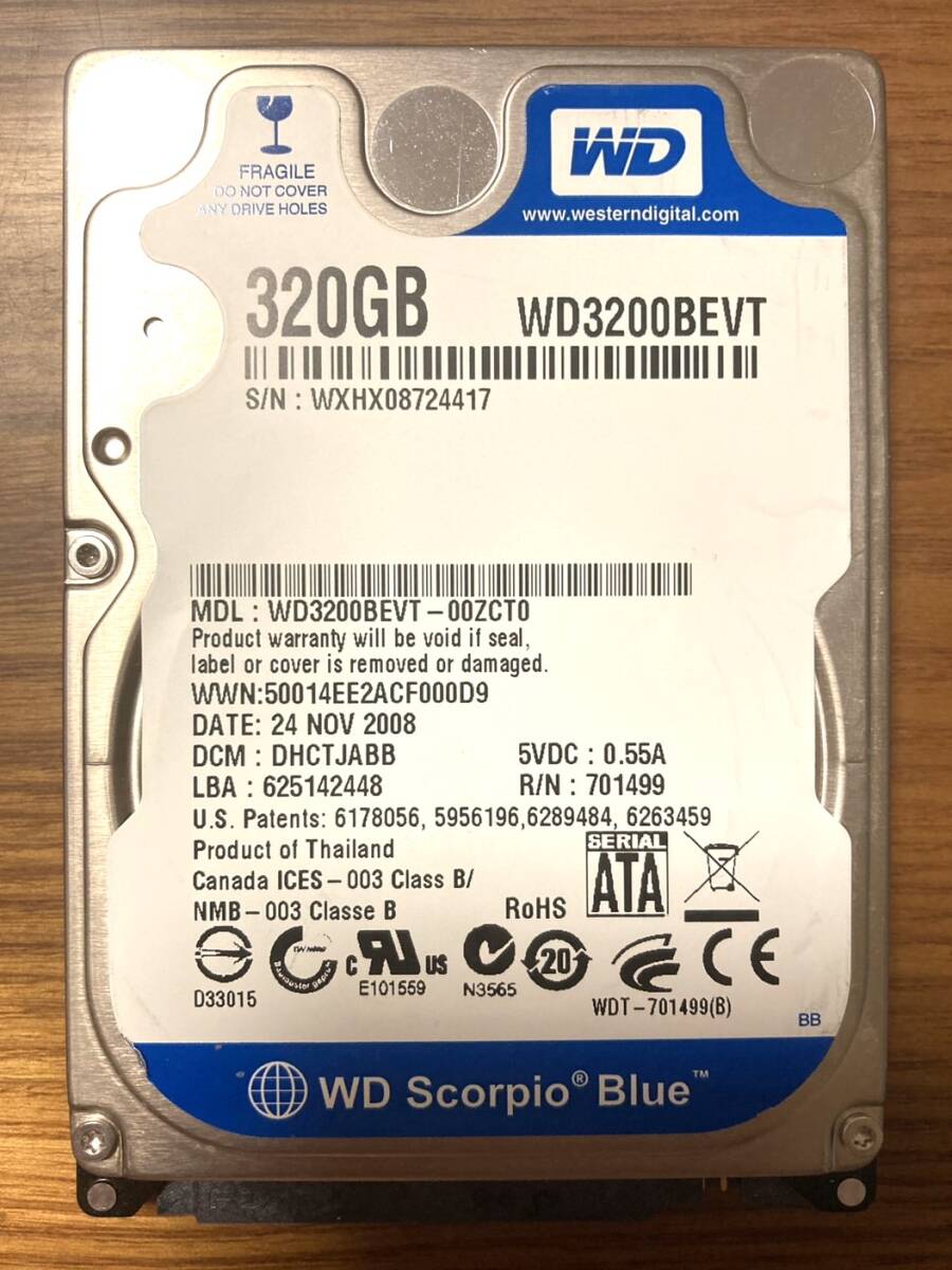 - 【使用時間:小】Western Digital ウェスタンデジタル WD Scorpio Blue WD3200BEVT 2.5インチ HDD 320GB 9.5mm厚(使用時間:200時間未満)
