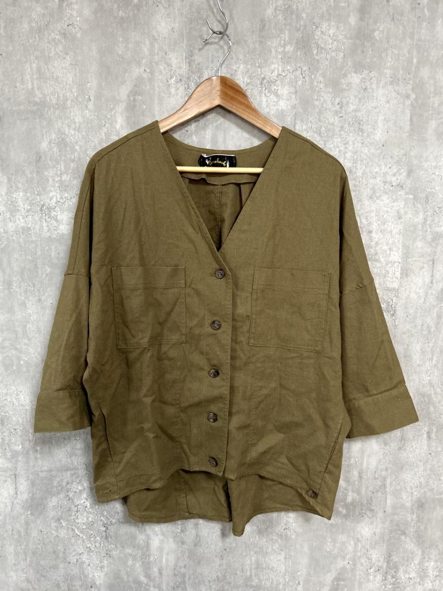 - ネコポスOK Omekashi オメカシ リネン混 半袖 シャツ sizeF/カーキ ■◆ レディース