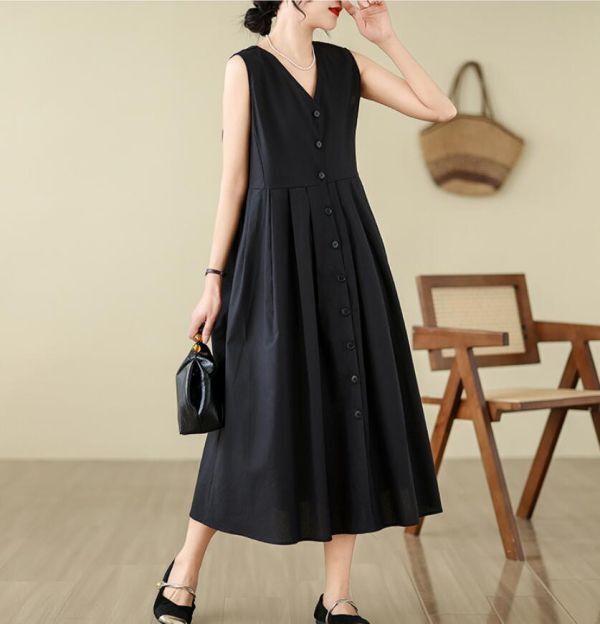 - 新入荷*オリジナル シャツワンピース 入学式 入園式卒園式 ノースリーブ ロングワンピース カジュアル Vネック Aラインワンピース*ブラック