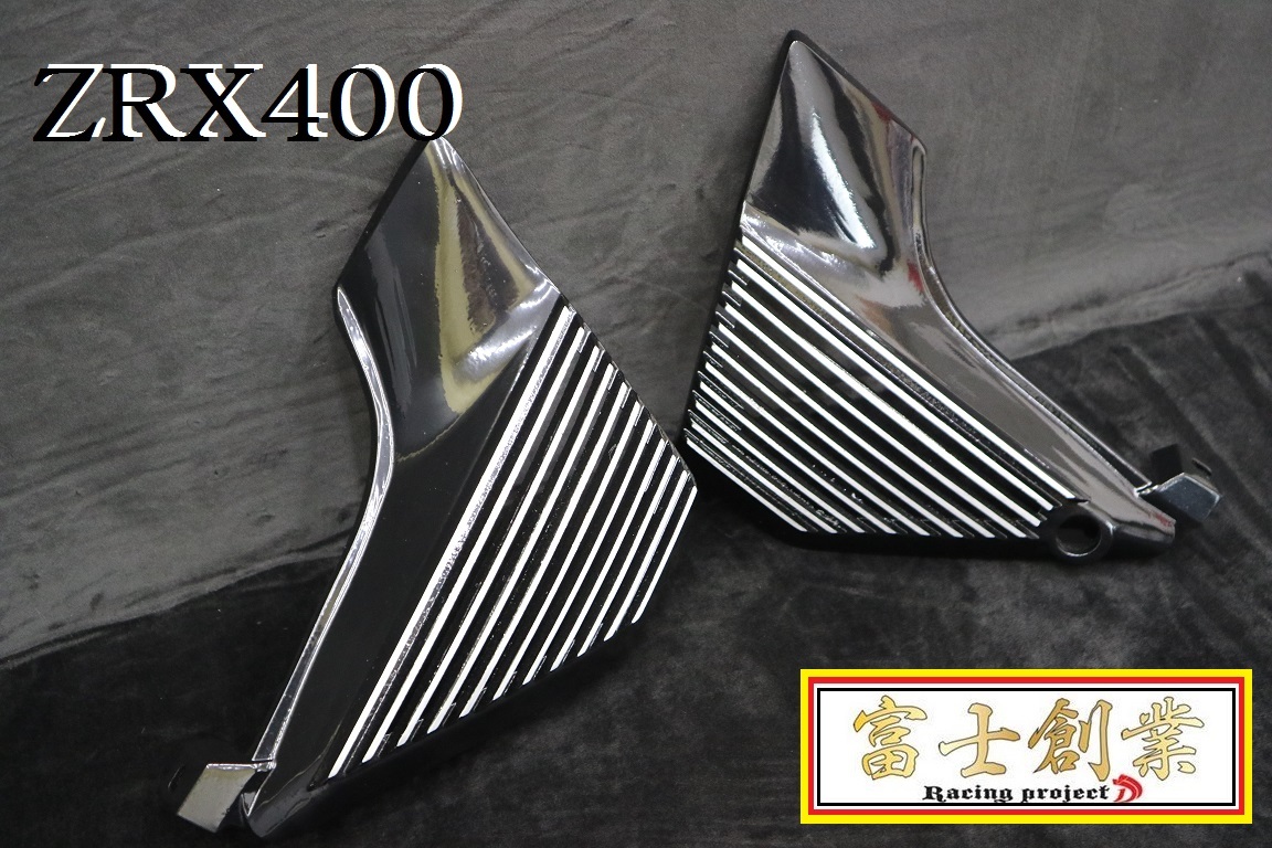> ZRX400 アルフィン サイドカバー ブラック/黒 削り出し ZR400E外装 アルミ製 カワサキ フィン 当時 暴走族 レインボー社長