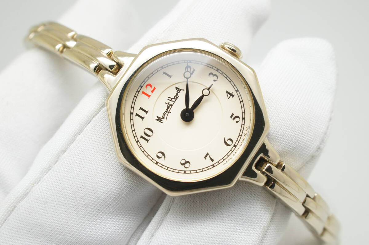 > G44●作動良好 超美品 MARGARET HOWELL マーガレットハウエル アイボリー文字盤 レディース腕時計 ゴールド金 お洒落 クォーツ
