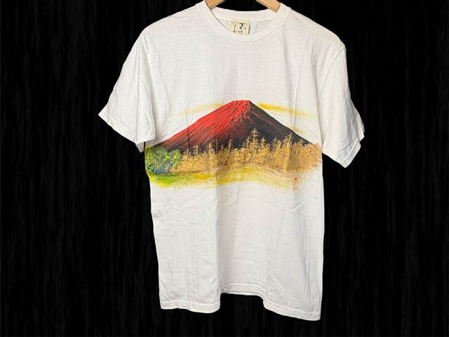 - 白 Lサイズ 富士山 むかしむかし 半袖Tシャツ 日本製 綿100%