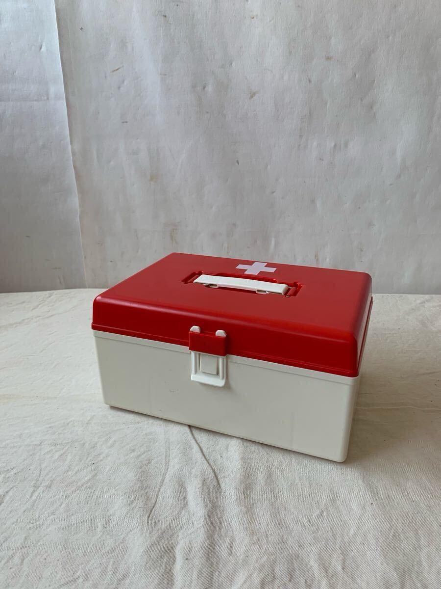 - 美品 持ち手付プラスチック製救急箱 小物入れアンティークビンテージ古道具インテリアディスプレイ収納箱店舗什器道具箱昭和レトロ雑貨飾り