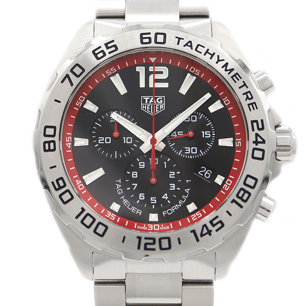 > 電池交換済 TAG Heuer タグホイヤー フォーミュラ1 クロノグラフ CAZ101Y 200m防水 デイト 黒 ブラック SS メンズ クォーツ