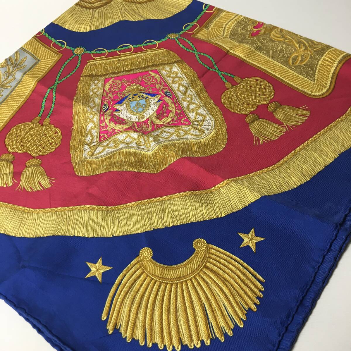 - 76B240|美品|エルメス カレ 90 スカーフ シルク ネイビーブルー