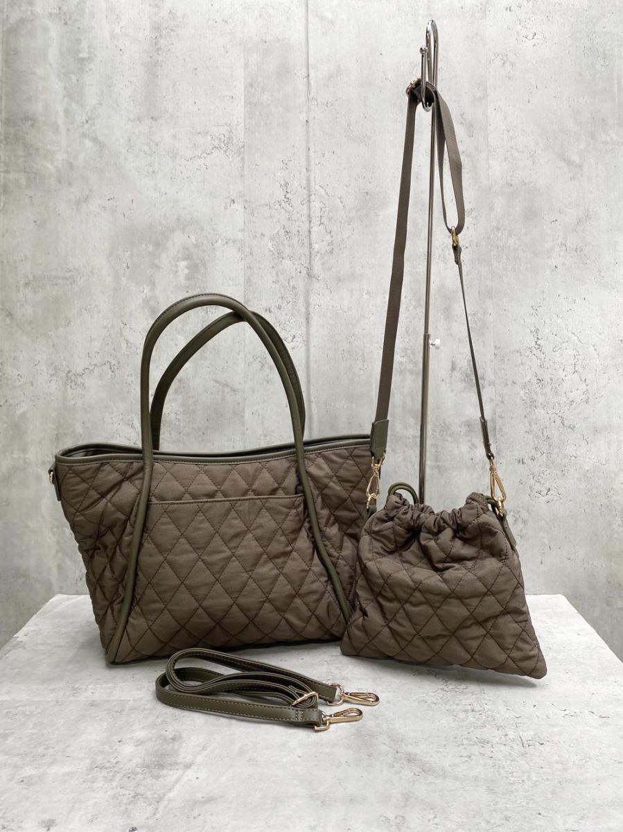 - 美品 aroco アロコ 2点セット キルティング 2way ショルダー トート 巾着ショルダー バッグ カーキ ■■◎