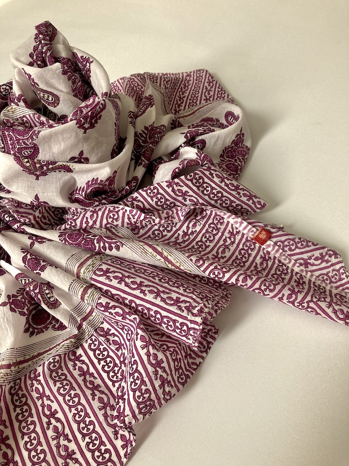 - 新品 NE QUITTEZ PAS!ヌキテパ取扱 ANOKHI◆インド手染めブロックプリント モロッコモチーフコットンBIGストール 大判