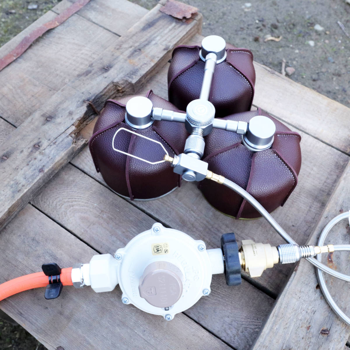 - 【送料無料】OD缶対応 3連連結アダプタ バルブ付きホース OD缶⇒減圧器変換アダプタセット Z21/Z32/Z55 《PayPay対応》