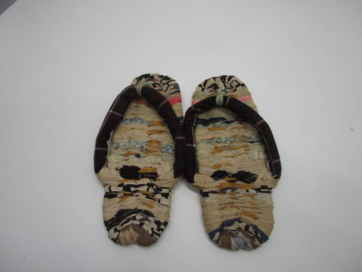 > P114★手作り 藁草履 わら草履 23cm 古民具 古道具 昔 田舎暮らし スリッパ ハンドメイド 布 布草履★中古品