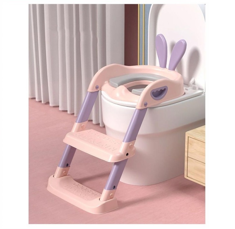 - トイレ補助 便座 子ども トイレ 補助便座 折りたたみ 滑り止め キッズ用 2段階 踏み台 ステップ台 ベビー 一体型 子供 ピンク(ウサギ耳)